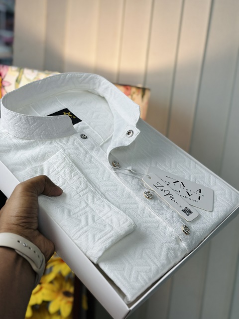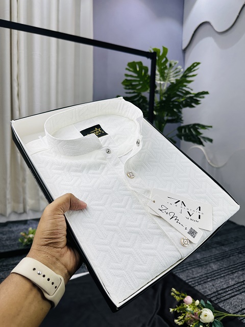 Premium White Popcorn Textured Panjabi – ZIS MEN’S Edition